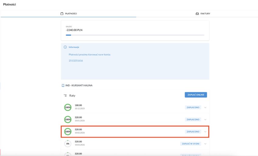 To proste, wejdź w zakładkę „Płatności” i przy najbliższej racie lub sumie wszystkich rat, kliknij w przycisk „Zapłać online”.