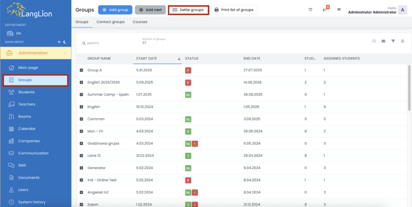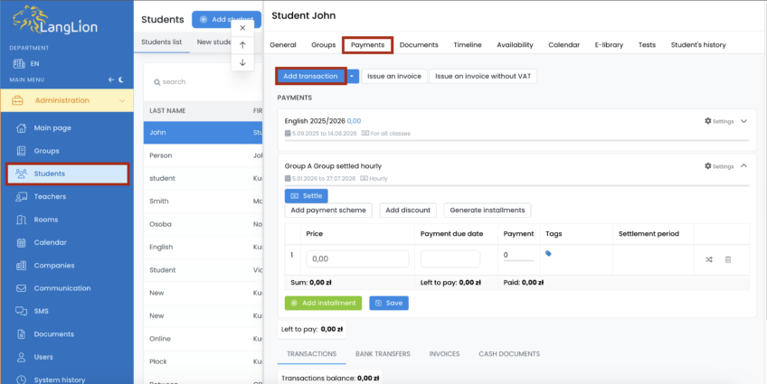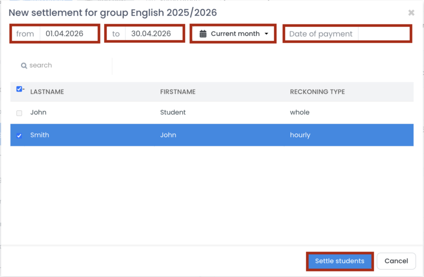 You can set it when creating a group, then all the students assigned to it will automatically have this type of settlement. You can also set them for each student separately. You can find more information in our instructions: