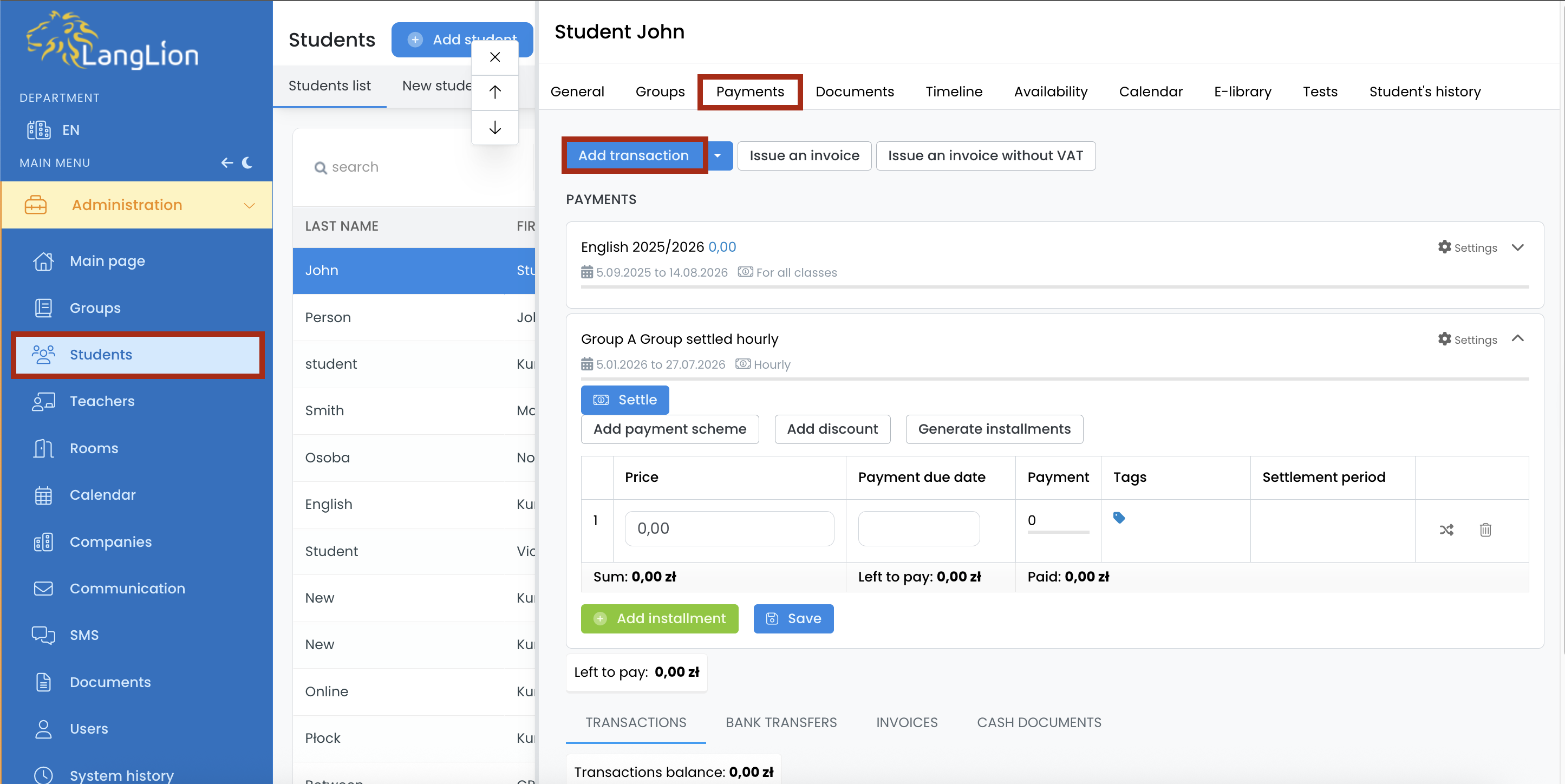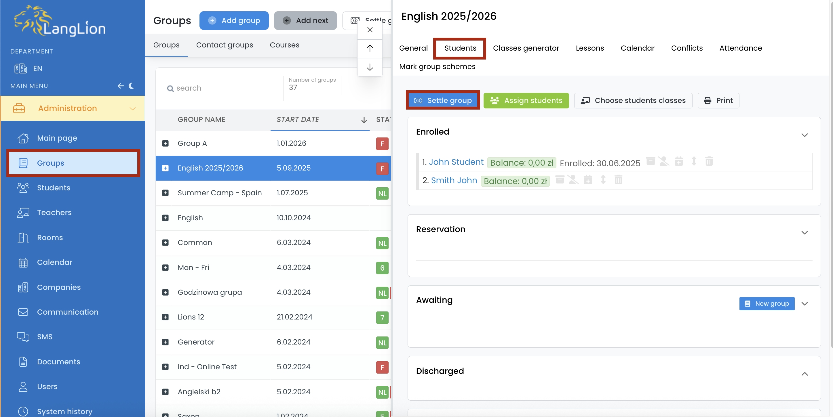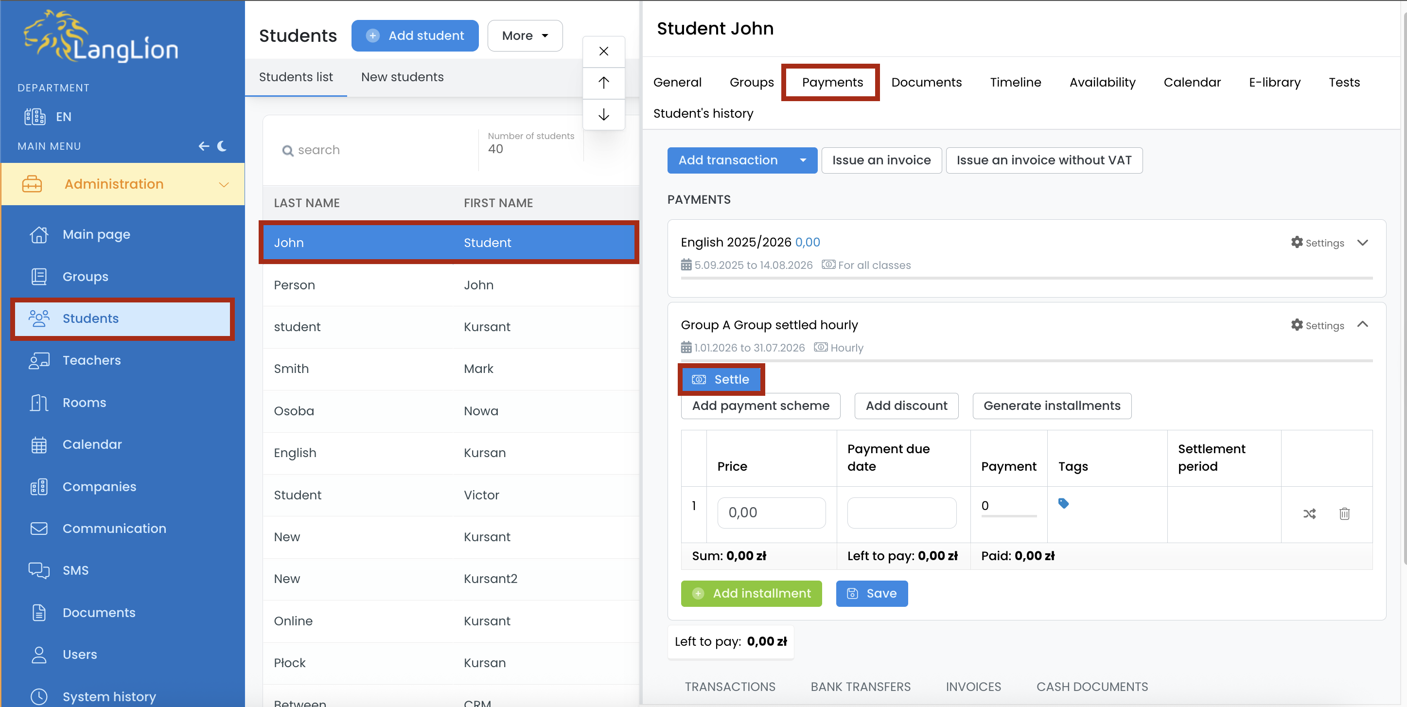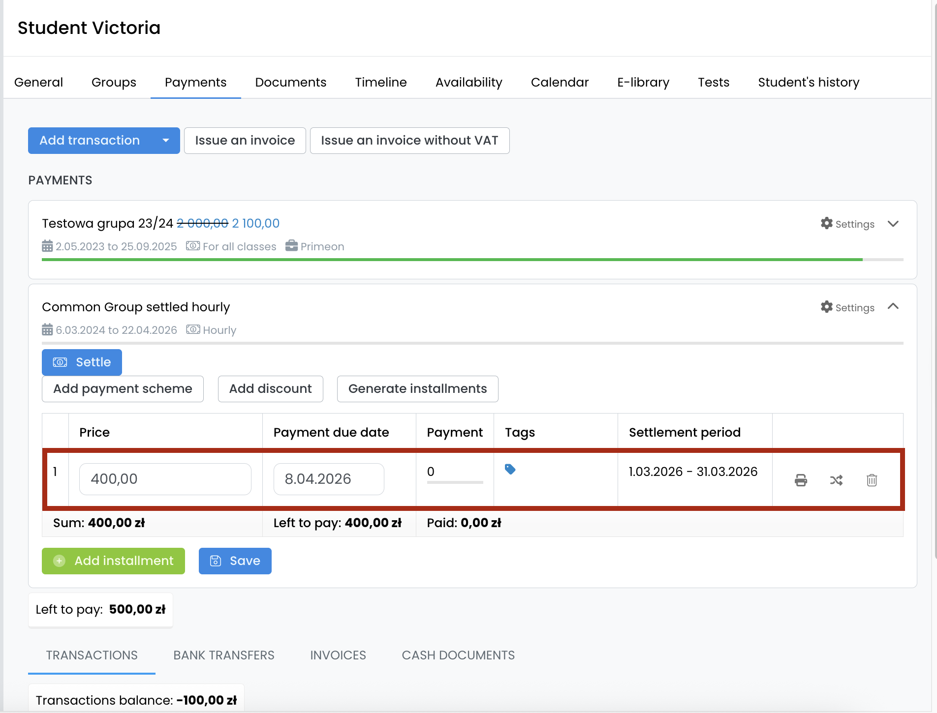 You can set it when creating a group, then all the students assigned to it will automatically have this type of settlement. You can also set them for each student separately. You can find more information in our instructions: