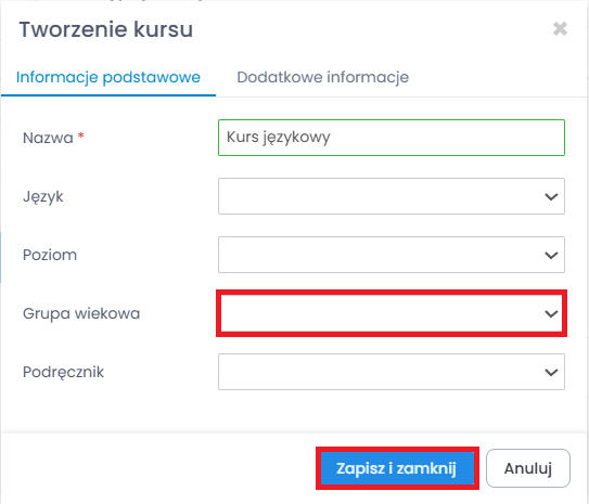 Jak przypisać grupę wiekową do kursu?