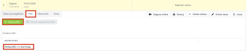 Dodawaj do zajeć różne pomoce naukowe dla kursantów. Mogą mieć one postać zdjęć, plików audio czy też prezentacji.