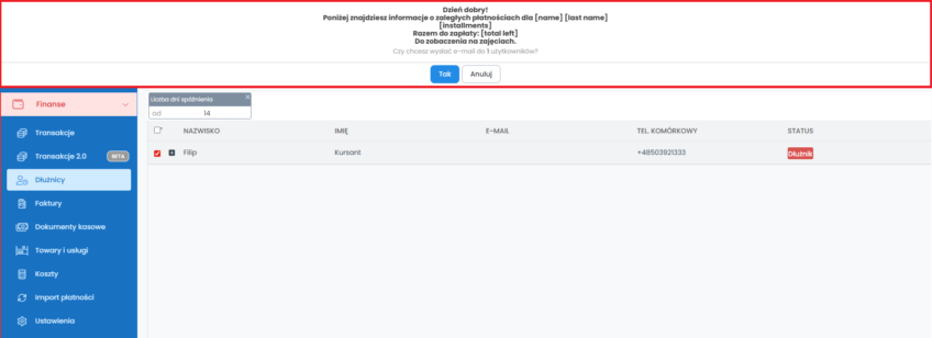 Chcę powiadomić kursantów o zaległych płatnościach – jak to zrobić?