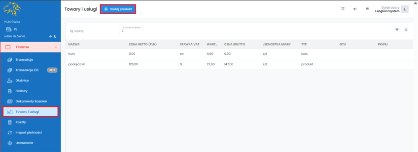 W prosty sposób możesz dodać towary lub usługi, czyli to co sprzedajesz kontrahentom, np. kurs językowy, podręcznik, usługę tłumaczenia dokumentów, itp.