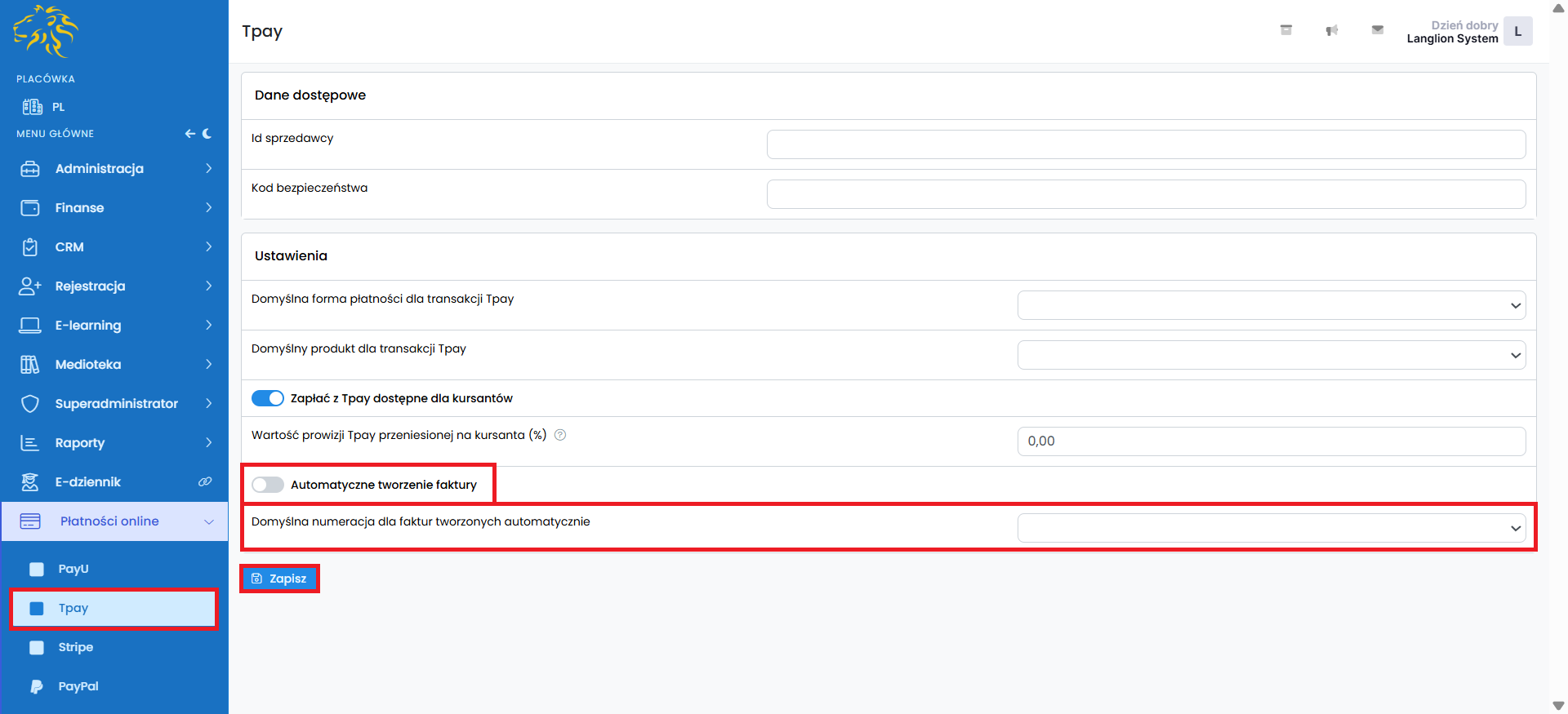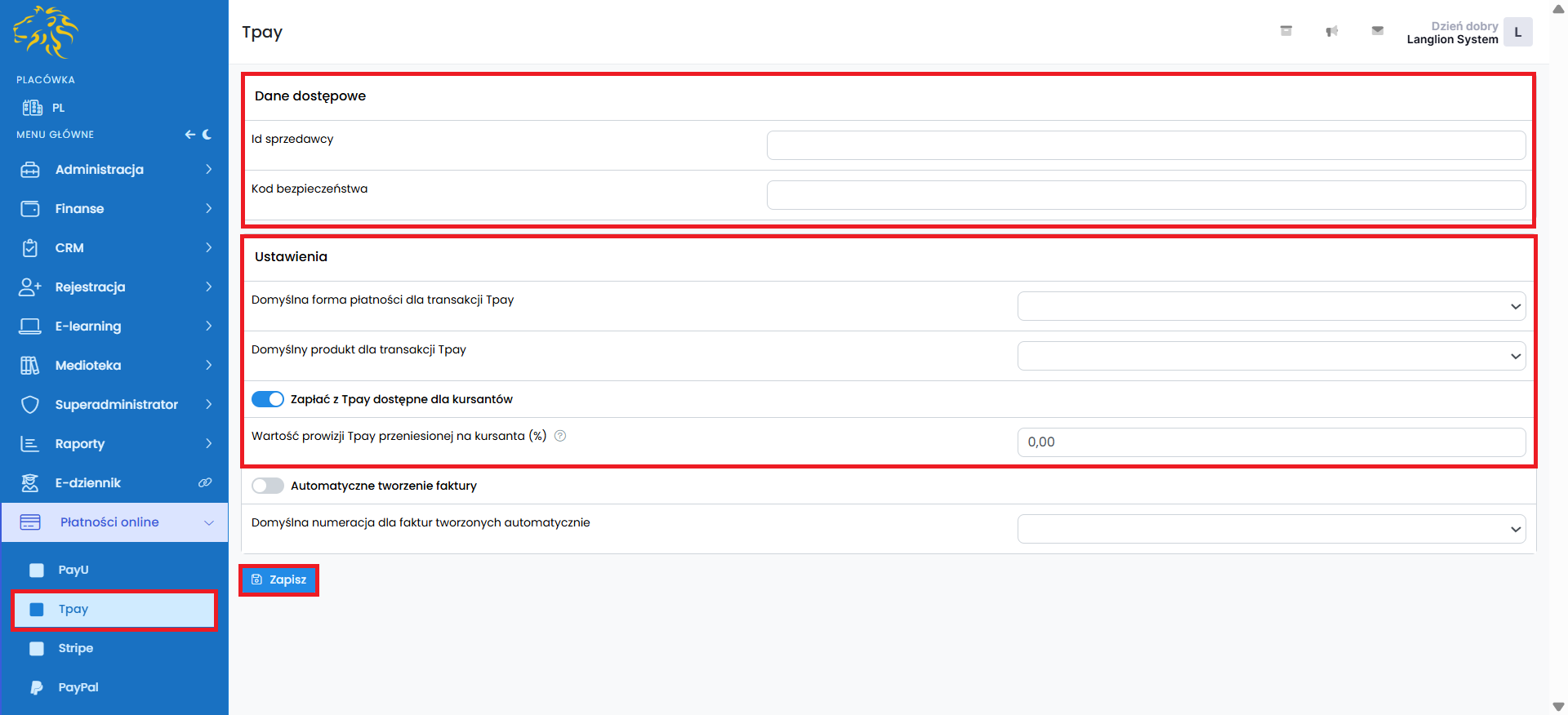 Integracja konta Tpay z Platformą LangLion