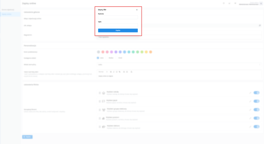 Nazwy filtrów możesz zmodyfikować klikając w ikonkę ołówka. W nowym okienku edycji masz również możliwość dodania opisu takiego filtru