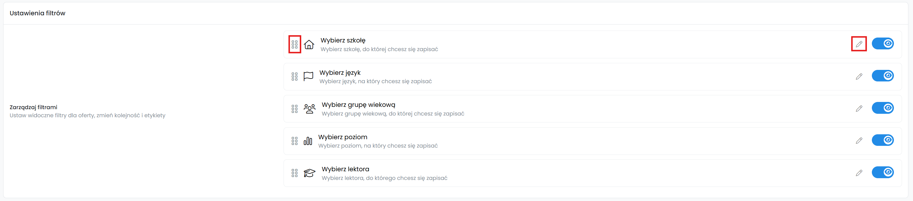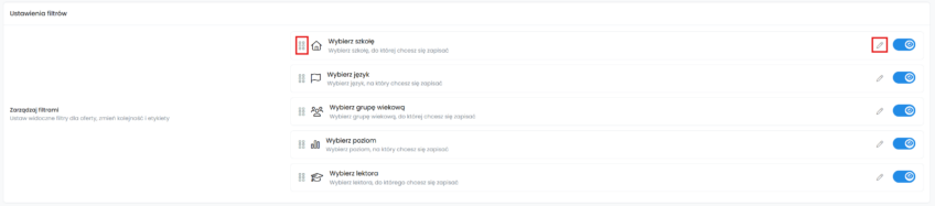Ponadto, jeśli chcesz zmienić kolejność wyświetlania filtrów, możesz przeciągając wybrany filtr w górę lub dół za pomocą ikonki sześciu kwadracików.