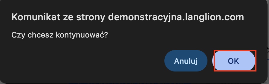 Po wybraniu tego statusu, wyskoczy okno z pytanie, czy chcemy kontynuować, potwierdzamy klikając OK.