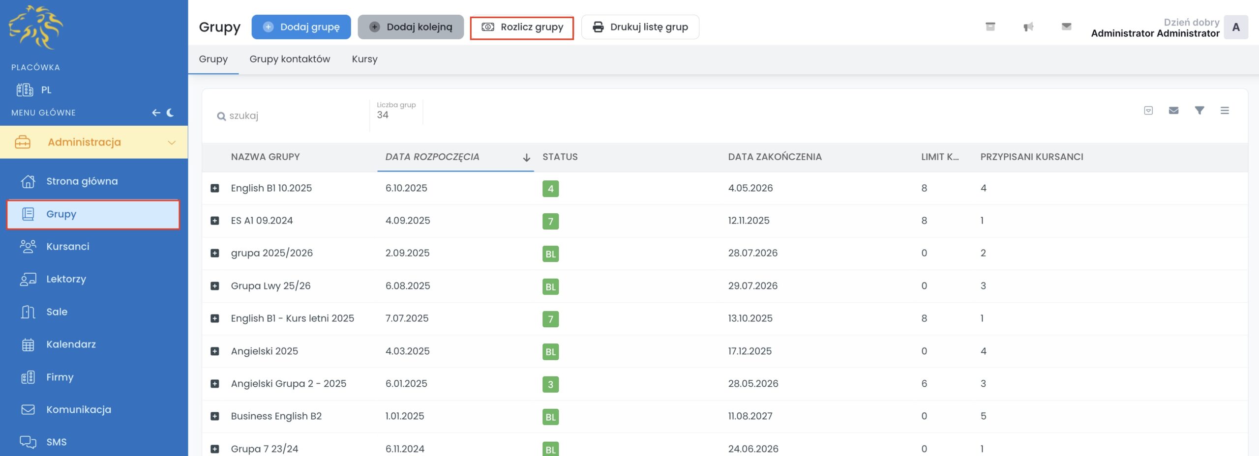 1. W module „Administracja” wejdź w zakładkę „Grupy”