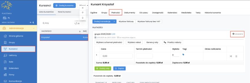 1. Wejdziesz w zakładkę „Kursanci” i wybierzesz właściwą osobę.