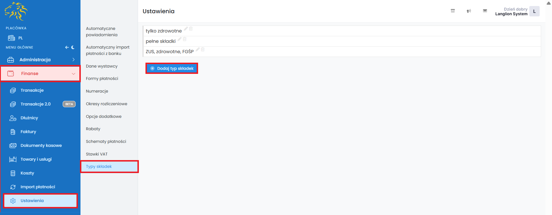 2. Wybierz zakładkę „Typy składek” i kliknij w przycisk „Dodaj typ składek”.