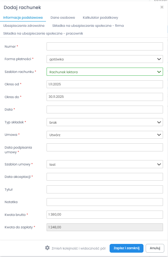 Gotowe, składki zostały zdefiniowane i teraz możesz rozliczyć lektora.