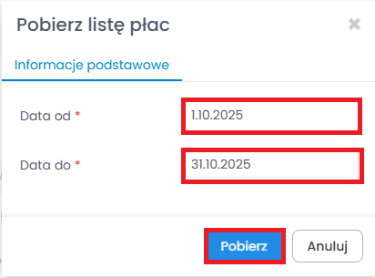 W kolejnym kroku, wprowadź zakres dat i kliknij w przycisk „Pobierz”.