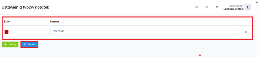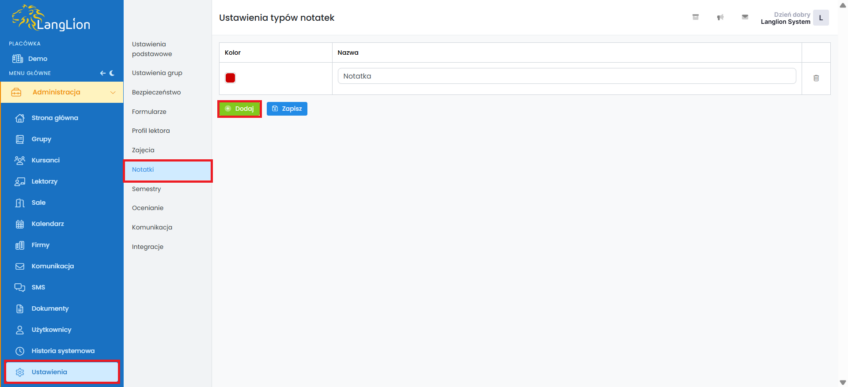 Gotowe, typy notatek zostały utworzone. Teraz możesz dodać notatkę kursantowi.