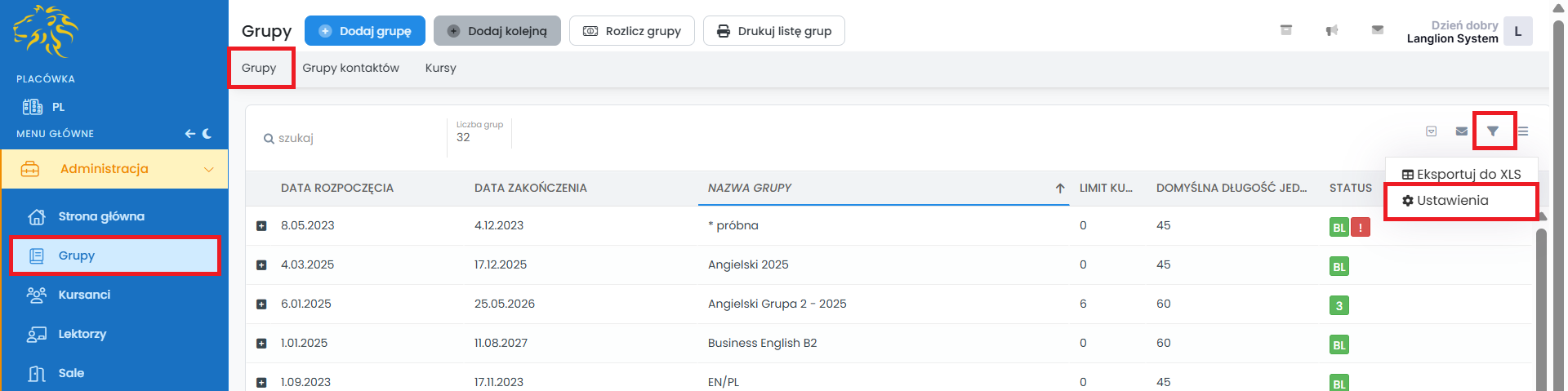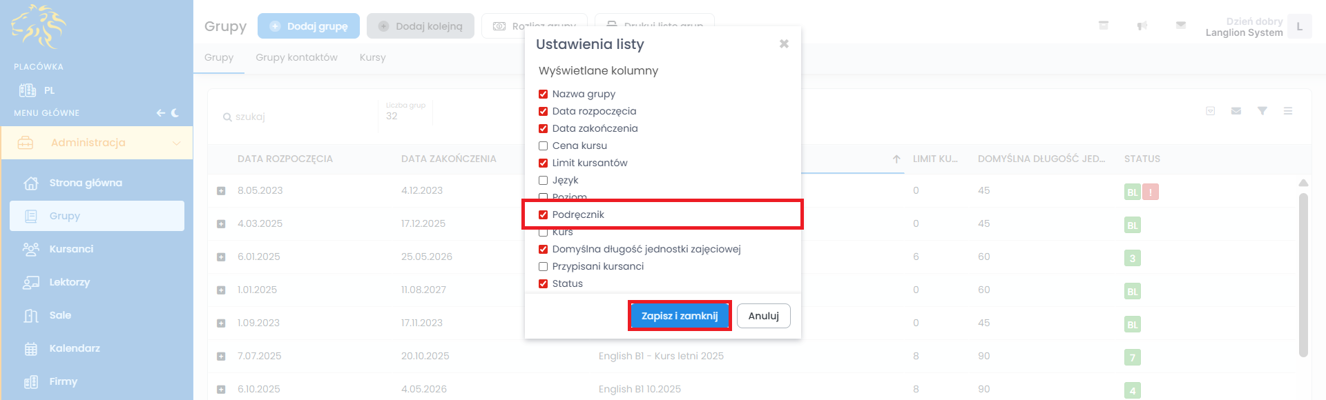 W Platformie LangLion możesz dodawać podręczniki, które następnie przypiszesz danej grupie. W dalszym zarządzaniu grupami, masz możliwość filtrowania grup według podręcznika, który do nich przypisano.